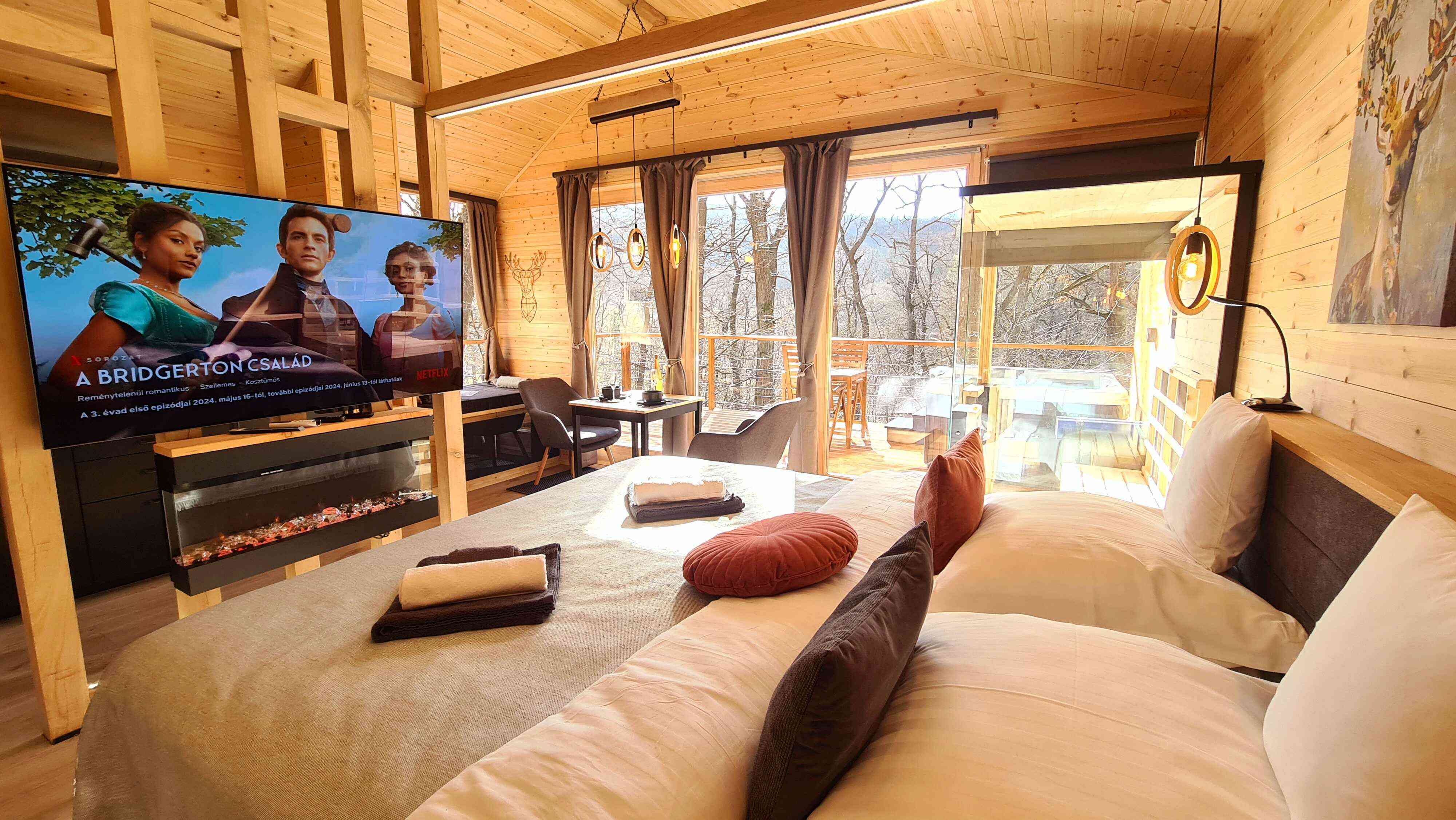 Szauna, TV, Kerékpár, Kandallo