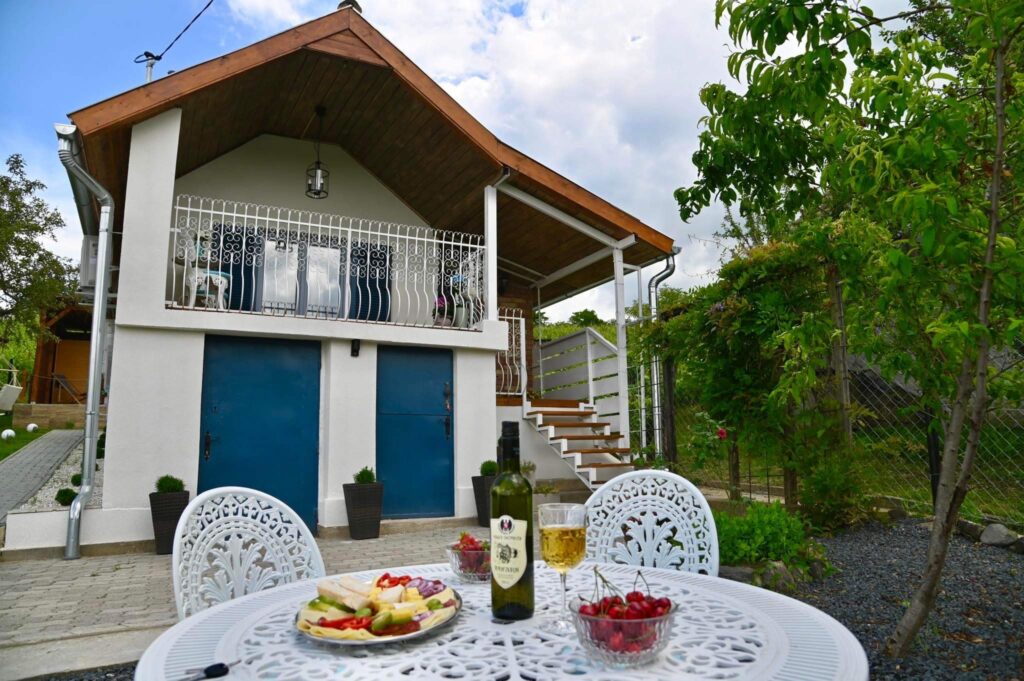 Itt a hegyoldalban, elhagyatott kápolnák , öreg présházak, borospincék között bújik meg a vendégházunk.