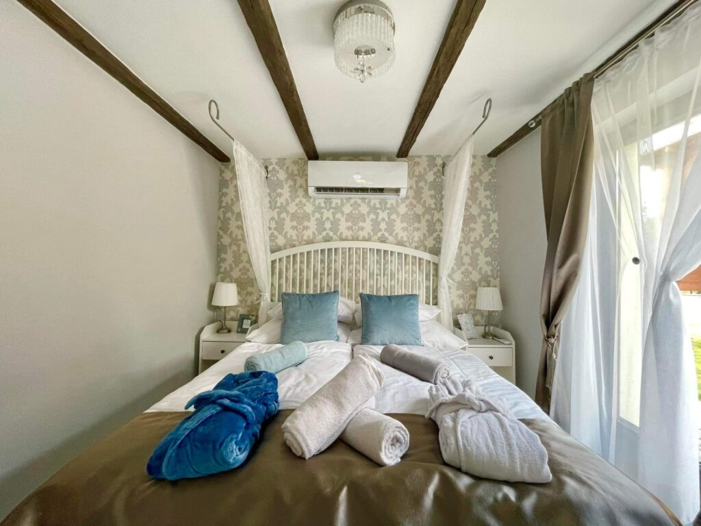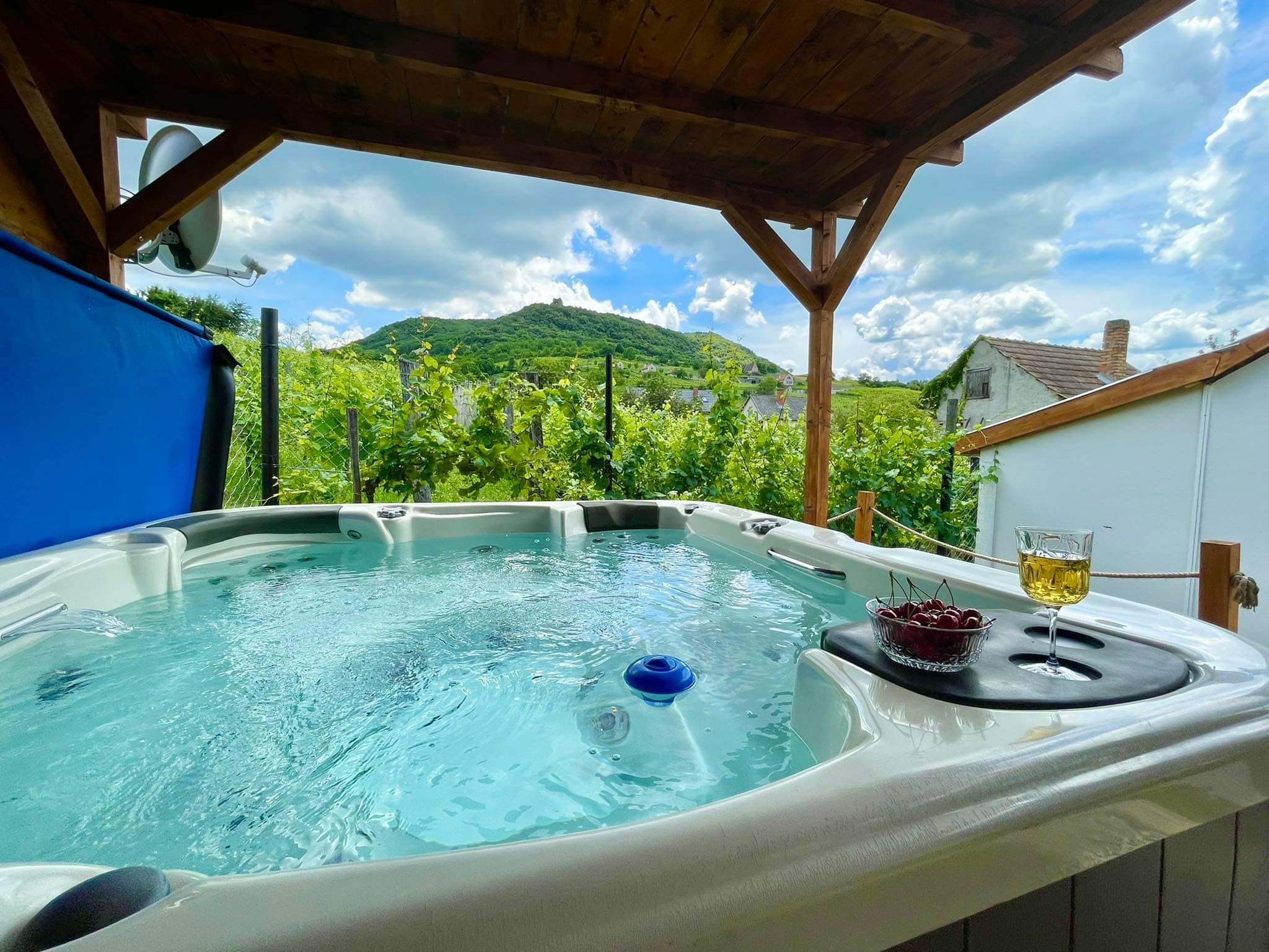 Távol a város zajától, csend, nyugalom, béke honol. Reggelente madárcsicsergésre ébredsz, napközben jókat kirándulhatsz, az estéidet pedig töltheted a kandalló mellett bekuckózva egy jó könyv és egy pohár, finom somlói bor társaságában vagy lazulhatsz szeretteiddel a jakuzziban.