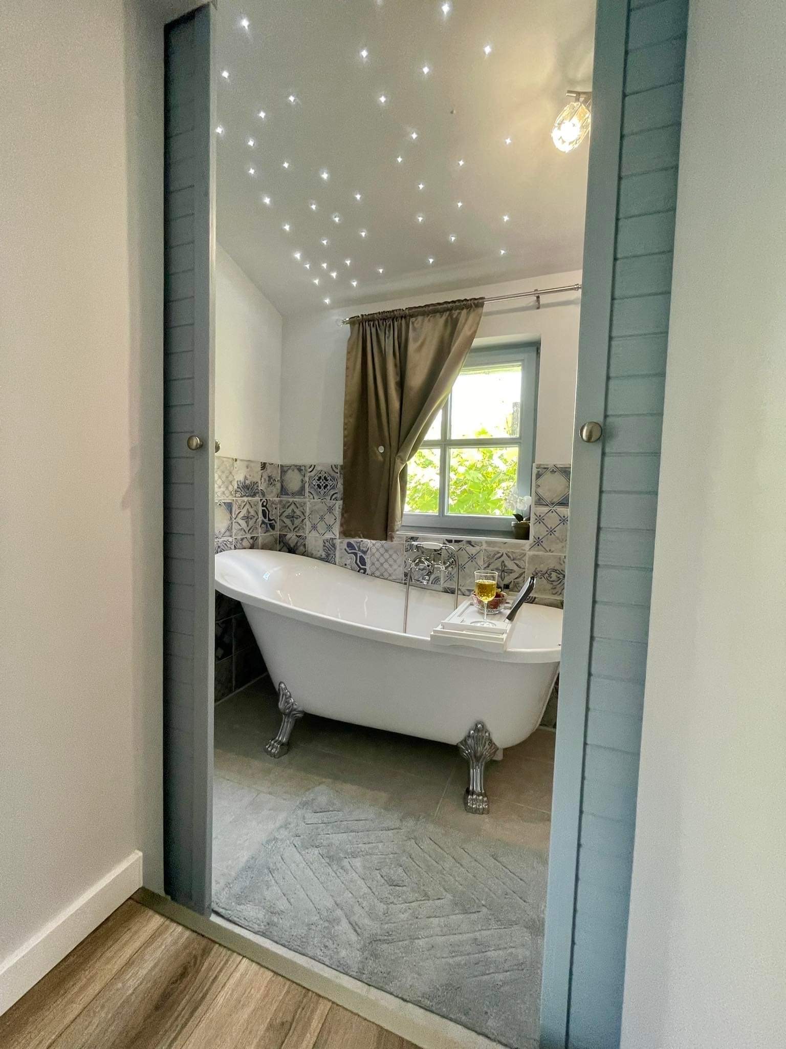 A kertben napozóágyakban élvezheted a napsütést vagy a jakuzziból gyönyörködhetsz a várra néző csodálatos panorámában.